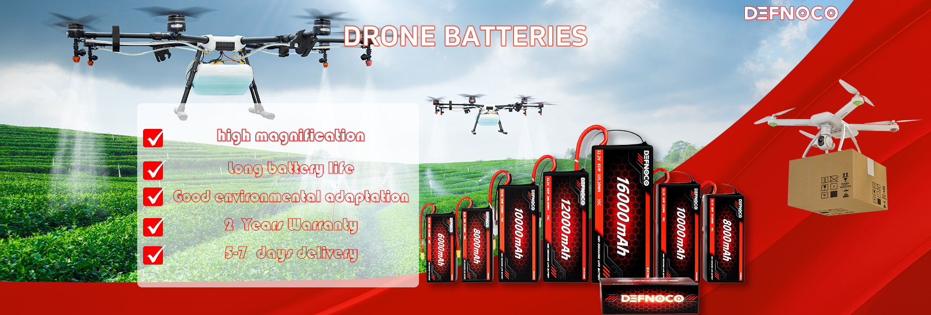 Defnoco is specialized in manufacturing high power rechargeable batteries which is use for drone, bicycle&scooter, jump starter, electric tools, home application, power storage, etc. We are the professional manufacturer in producing high performance FPV drone battery, lipo battery, Solid state battery, bicycle&scooter battery, jump starter. To Achieve this,we had the one step service for battery cell production, SMT, R&D,Assemble & Produce and Market Sales.